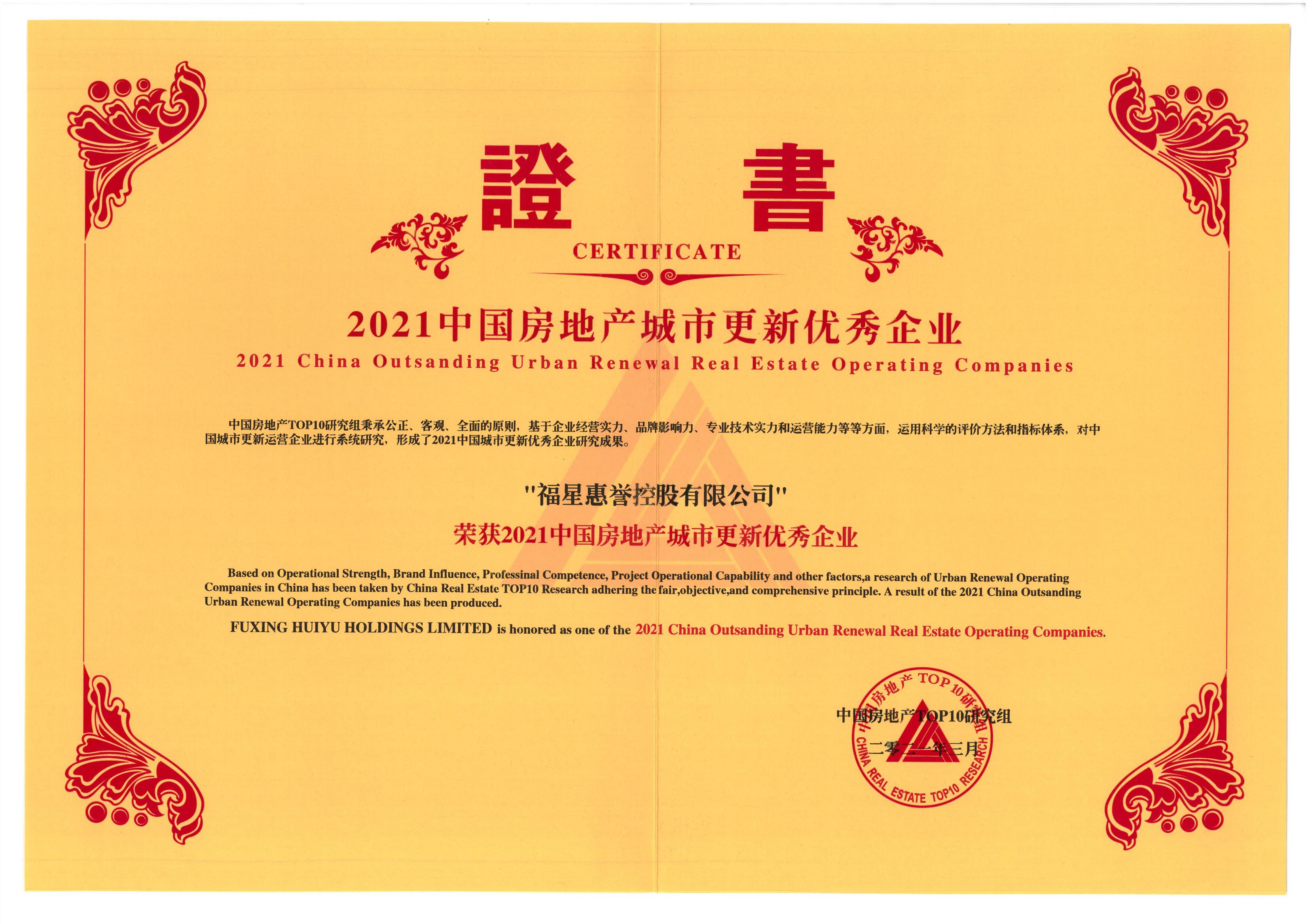2021中國(guó)房地產(chǎn)城市更新優(yōu)秀企業(yè)