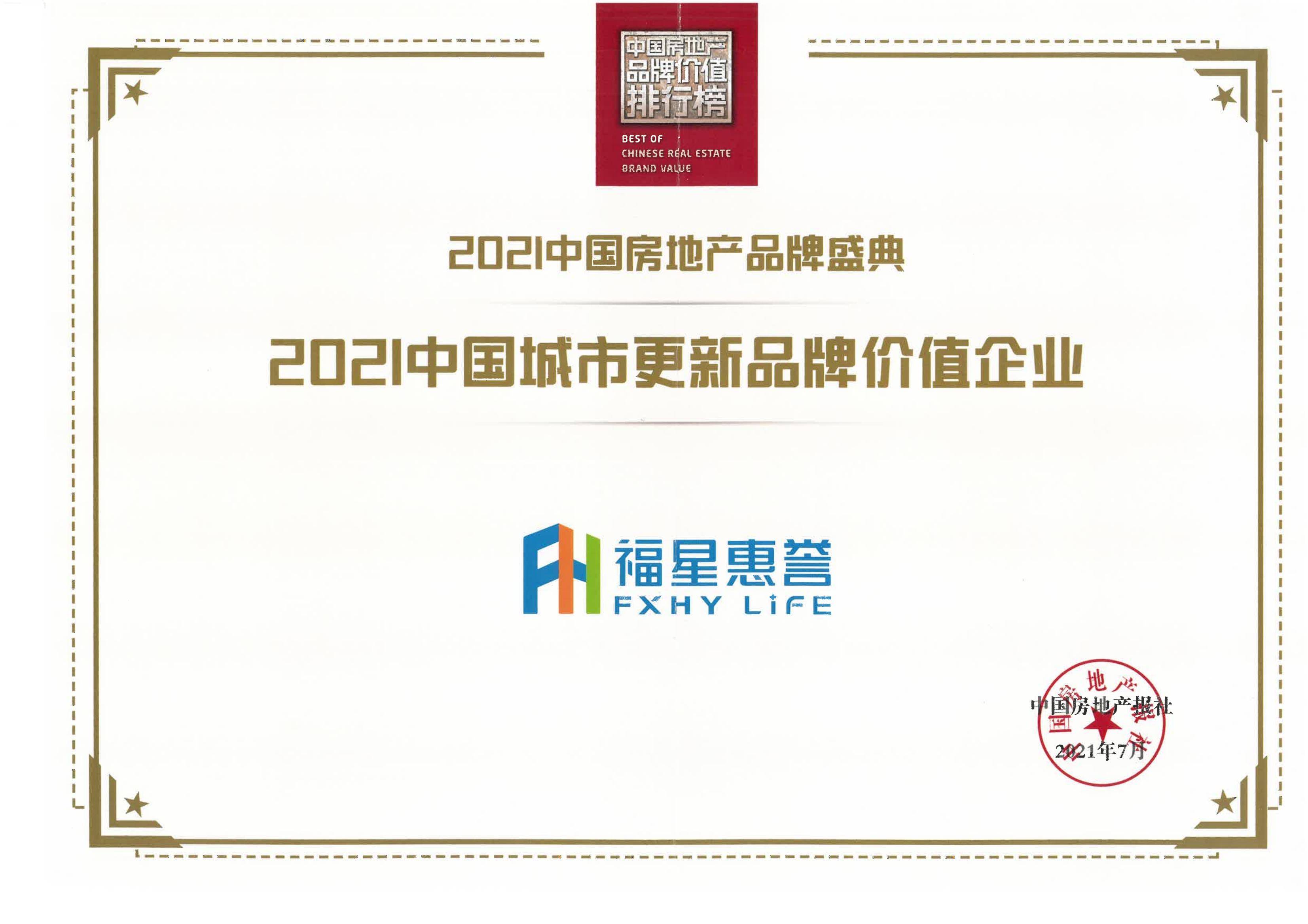 2021中國(guó)城市更新品牌價(jià)值企業(yè)